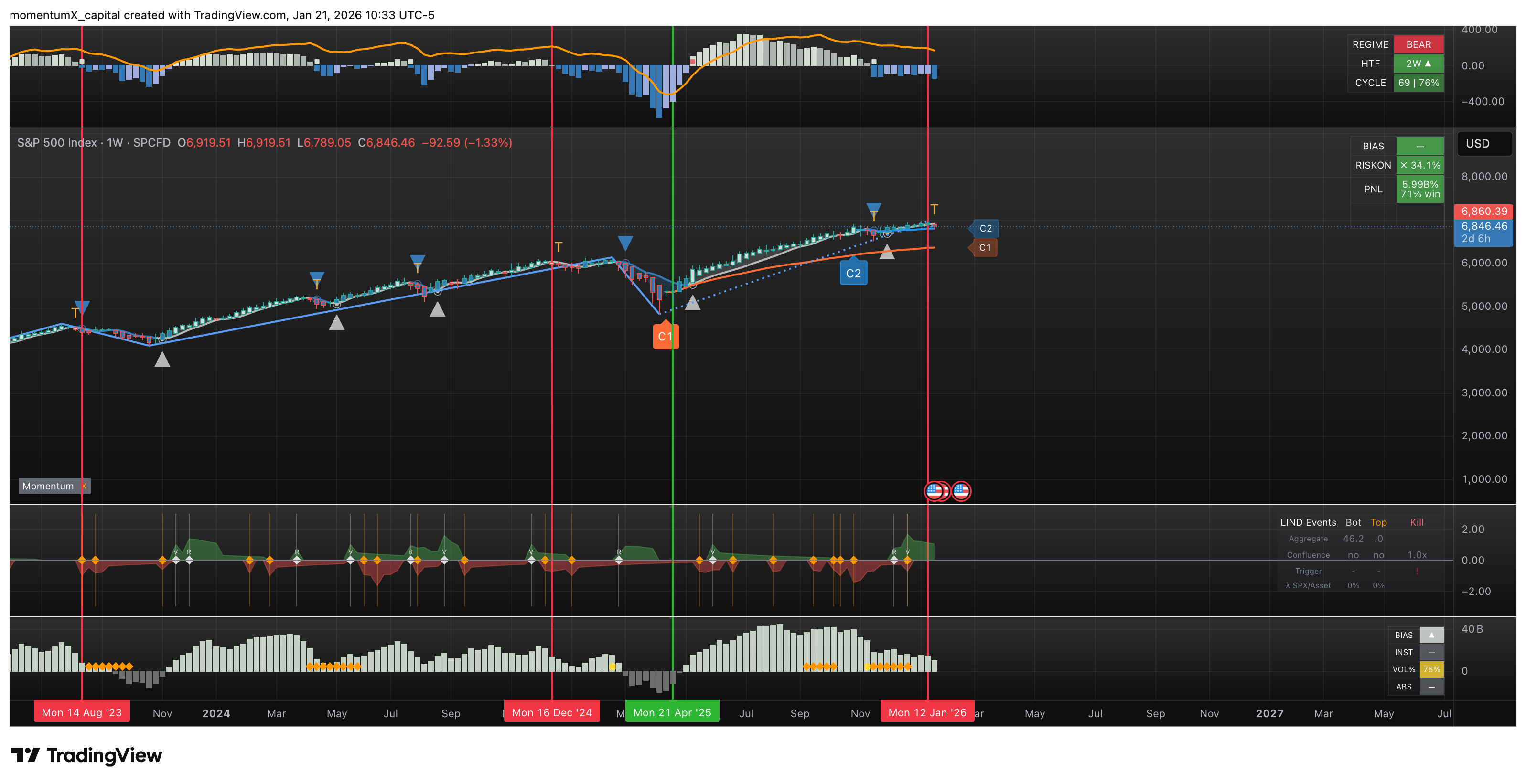 - SPX and Nasdaq Weekly Signals: Top reversal patterns on the 1-week and 2-week charts on Duo Index for both the S&P 500 (SPX) and Nasdaq. These have historically been spot-on for catching market peaks - we're scrutinizing the next signals to confirm if this transition accelerates downside.