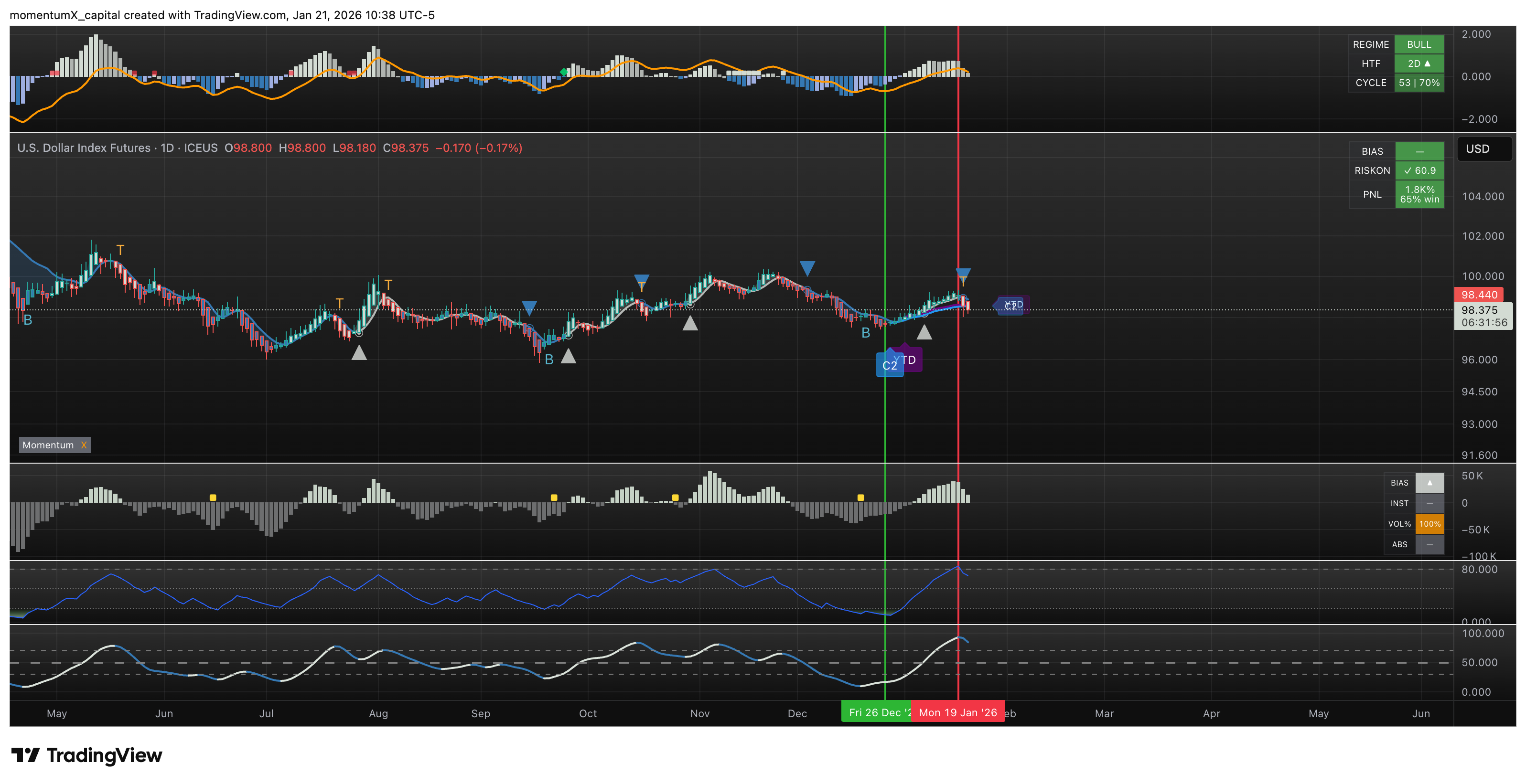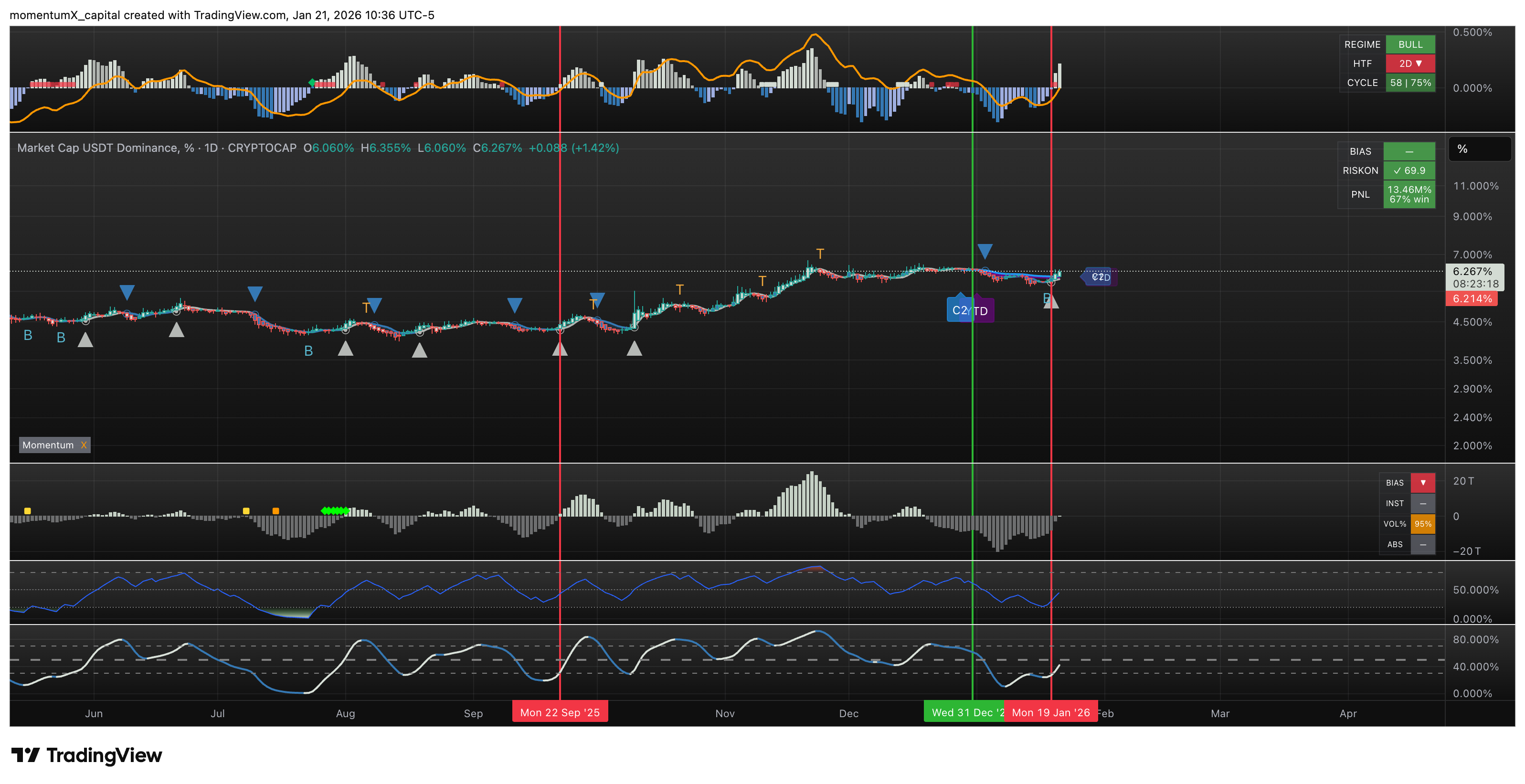 - Crypto Regime Shift: USDT.D (Tether dominance index) reversed upward on the daily chart, signaling a return to bearish conditions in crypto. Geo tensions have unfortunately flipped what could have been a rally toward 103-110—we'll keep a close eye as volatility spikes. And will be exiting on bounce.