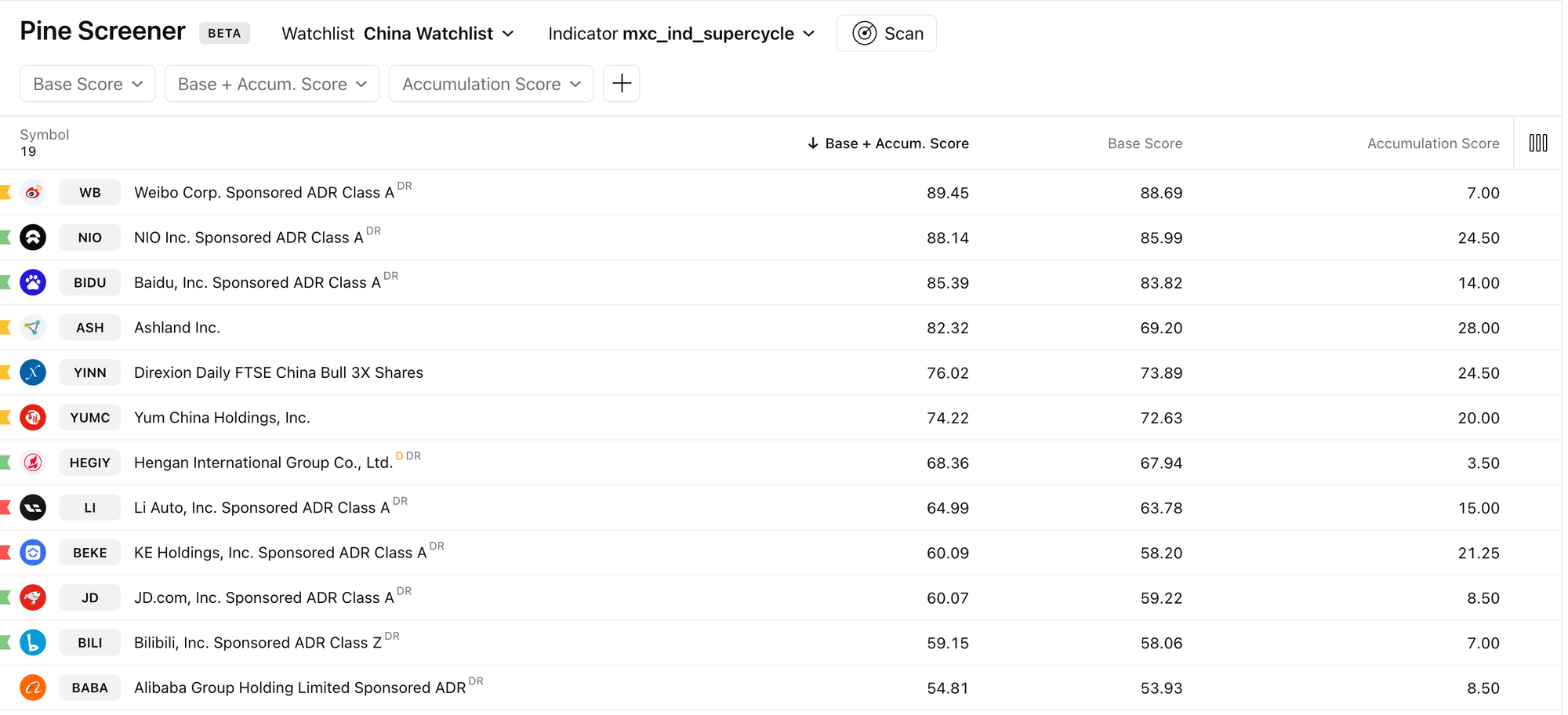 Applying our filters, we narrow the list. BABA, BILI , JD and BEKE are eliminated due to low basing + accumulation scores. Next, we apply our qualitative and strategic checks. This analysis yields our final shortlist: