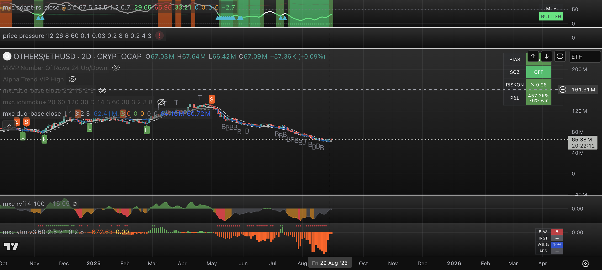 - OTHERS / ETH ratio - showing bullish Adaptive RSI across timeframes.
