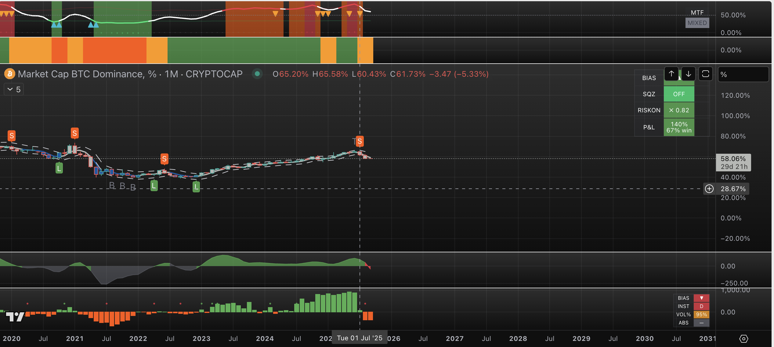 BTC Dominance Sell (S) signal on Monthly Timeframe - this is a strong signal.