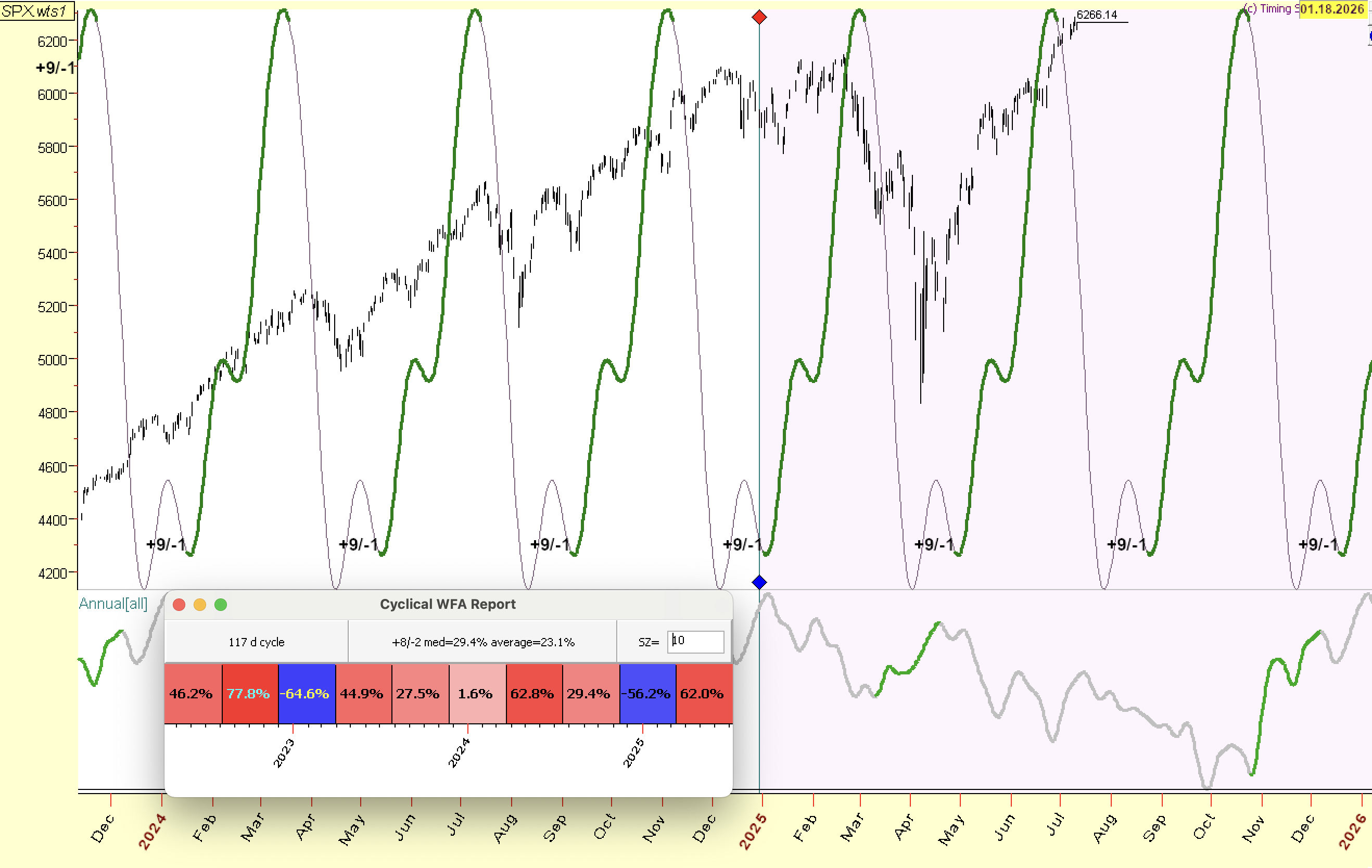 The 18-month nominal cycle might not have the surgical precision for day trades, but it's an indispensable tool for understanding the multi-month trend's pulse and the current market regime. Typically swinging between 15 and 17 months, it absolutely needs to be cross-referenced with our shorter-cycle analysis and, of course, our proprietary indicators for those actionable buy triggers around cycle lows.