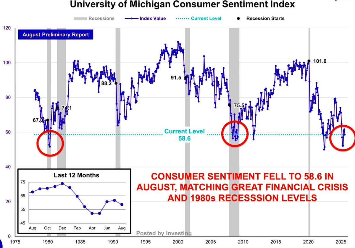 The message from the real economy is clear: things feel stagnant. Consumer sentiment down, sales are broadly slowing, and recently laid-off workers are hoping for re-entry at a 20% discount. Yet, profits for many businesses are up as AI and automation slash back-office costs. This is the core tension: a weakening consumer versus corporations optimizing for net income, not revenue.