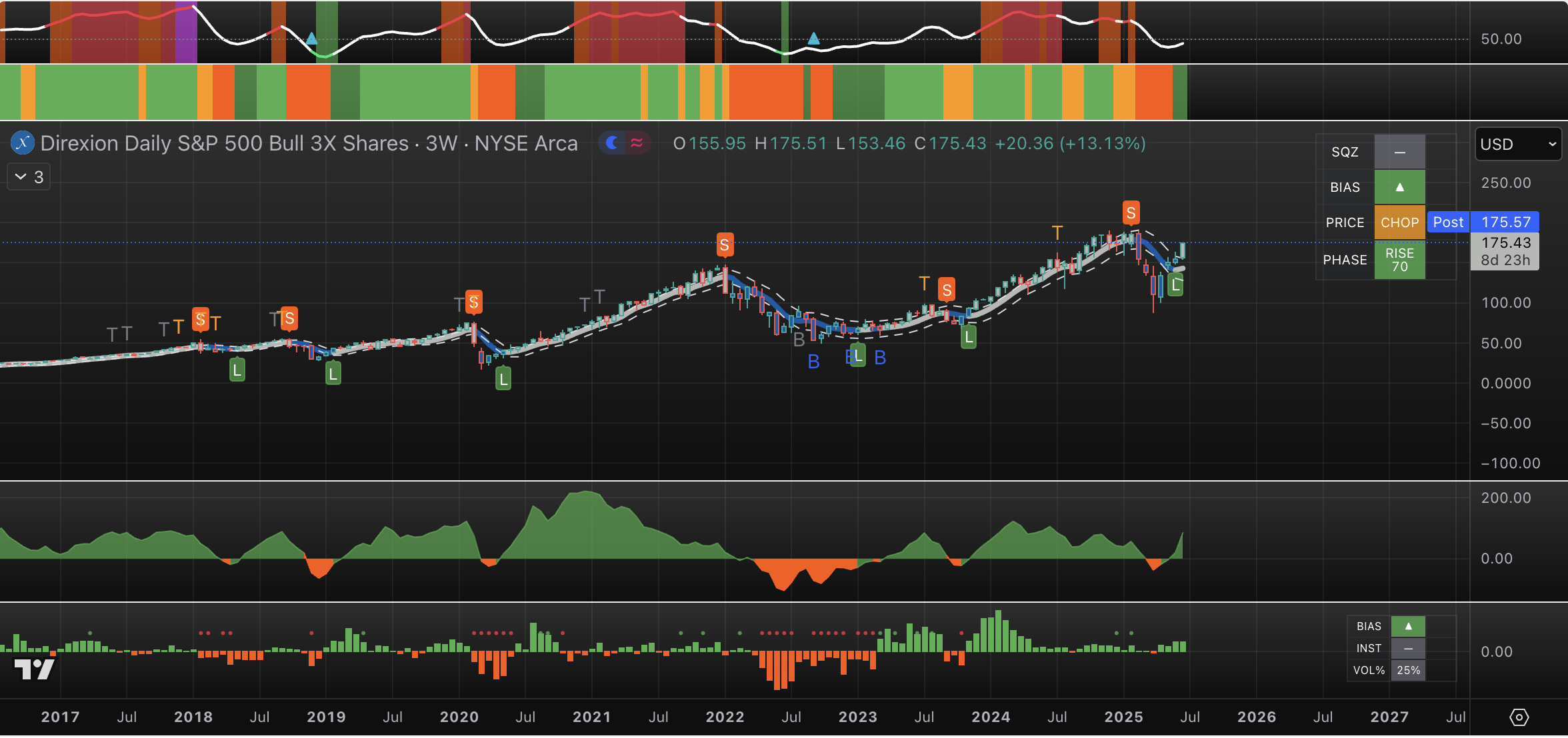 A quick note on the charts: the patterns in the S&P 500 (SPY/SPXL) and the NASDAQ (QQQ/TQQQ) are nearly identical at the moment. To keep our analysis clean and focused, we'll use the SPXL chart as our primary proxy for the broader equity market's euphoric run.