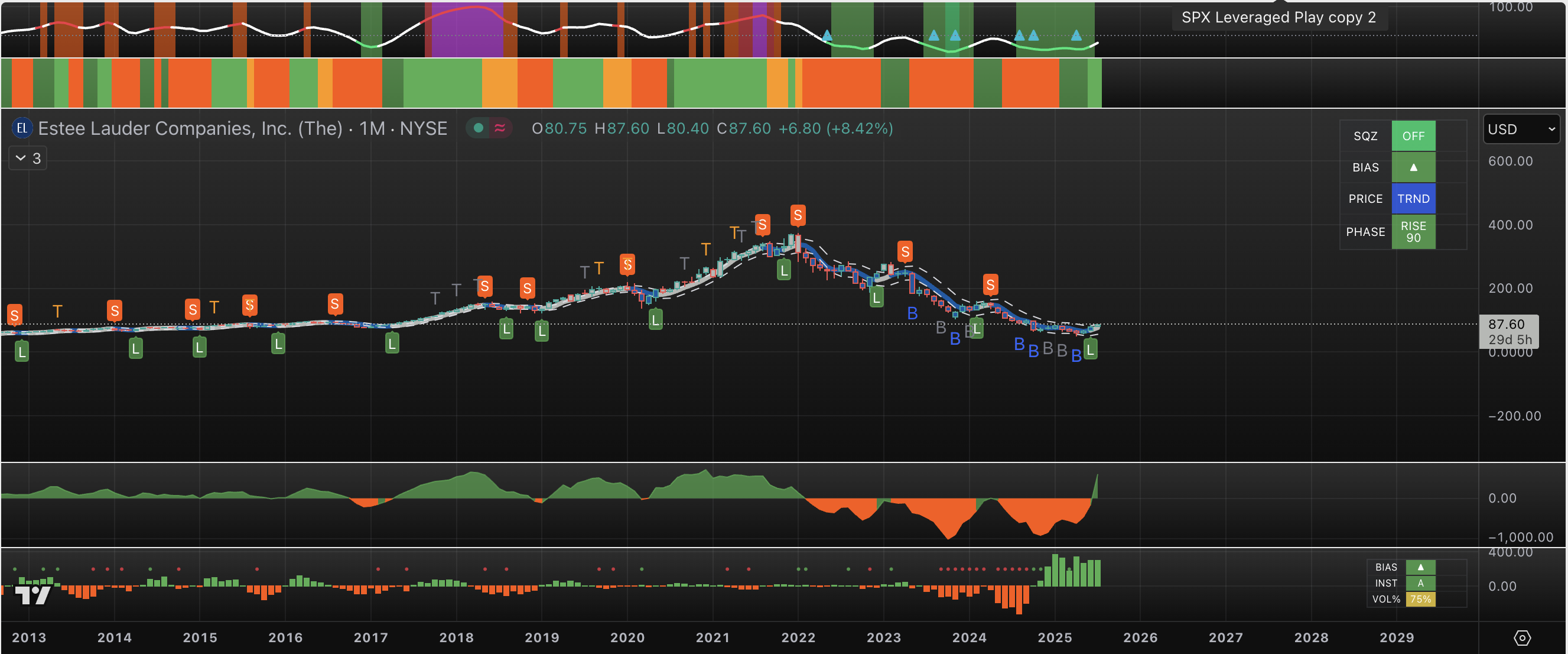 After a 2-year pit stop, our system confirms Estée Lauder (EL) has re-entered the race. A high-volume breakout validates our base analysis and institutional telemetry. The markup phase is green-lit, and our execution protocol is active. This is where engineering meets acceleration.